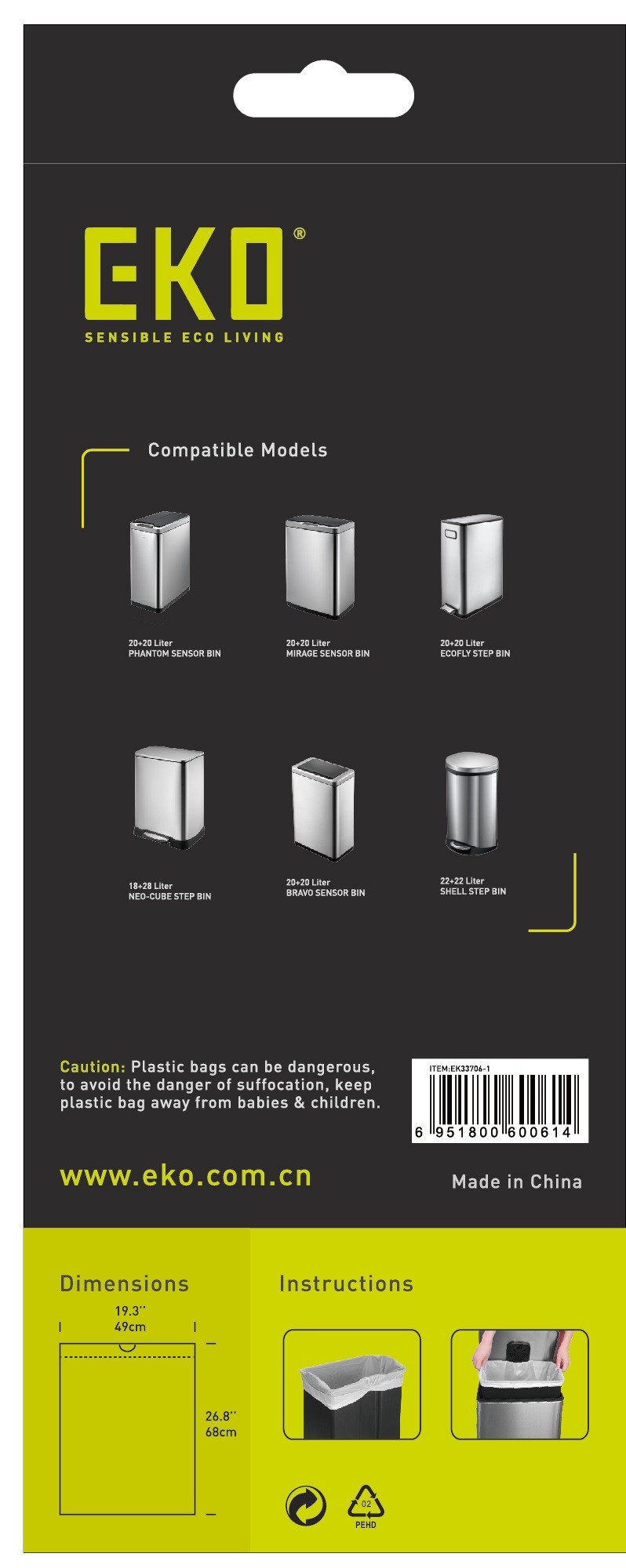 Торбите за смет на EKO са прецизно пригодени да отговарят на съответните кошчета EKO, но са подходящи и за други кошчета с подобни размери.