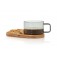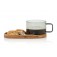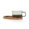 AdHoc Чаша за кафе (70мл) с подложка IMPACT - сиво стъкло/акация