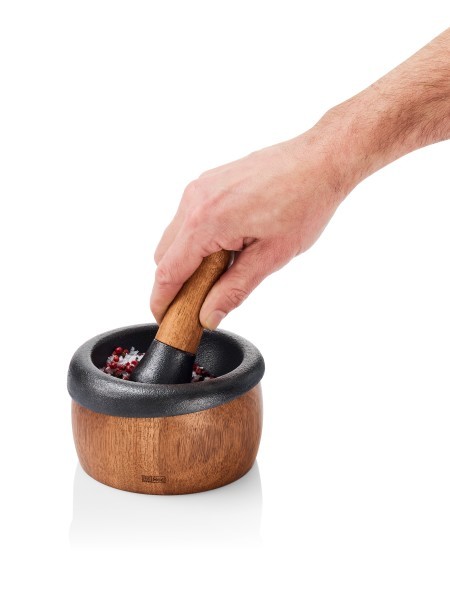 Crush е идеалният кухненски помощник за безпроблемно раздробяване и смилане на вашите съставки. Елегантната дръжка от акациево дърво на пестика е удобна за хващане, а неплъзгащите се гумени крачета осигуряват безопасна работа и защитават работните ви повърхности.