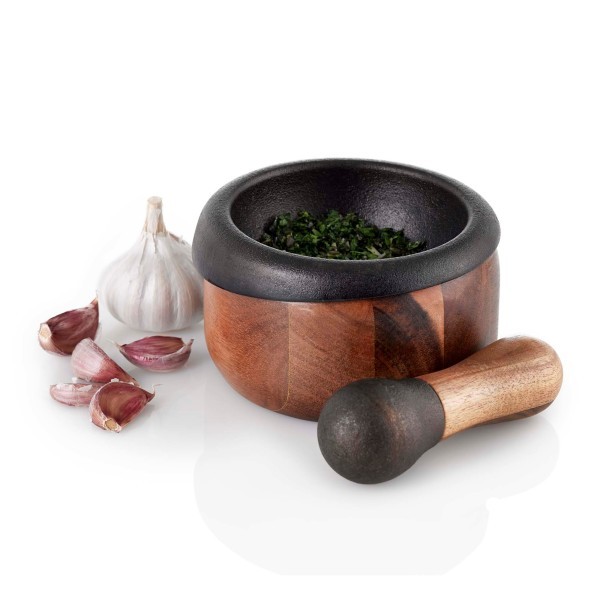 Изработено от висококачествено акациево дърво и чугун, това хаванче предлага традиционен метод на смилане, който гарантира пълния вкус и аромат на вашите билки и подправки.