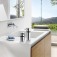 Серия за баня AREO се отличава с овални форми и матово-черен пластмасов елемент на всеки един продукт от серията. Овалната форма на детайла на стенната конзола, детайлите върху сапунерката, и формата на диспенсъра за сапун - всичко това отразява естетическата функция на аксесоари за баня AREO. Този полиран диспенсър за сапун има голям отвор за лесно и удобно зареждане.