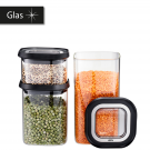 GEFU Комплект от 2 бр. стъклени канистери “KIPPO“ • Лесно дозиране чрез накланяне• Практичен капак от неръждаема стомана с вграден отвор• С винтов капак за лесно пълнене и почистване• Херметично затваряне, благодарение на силиконовия уплътнител на капака• Изработени от висококачествено боросиликатно стъкло• Вместимост на 1 бр: 1000 мл • Размери на 1 бр: Ø 10 х 19,1 см• Тегло: 0,930 кг • Материал: неръждаема стомана, пластмаса, боросиликатно стъкло, силикон • Стъклената част е подходяща за почистване в съдомиялна машина• Капаците НЕ са подходящи за съдомиялна машинаПроизводител: GEFU / Германия
