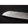 Острието на този нож е изработено по технологията на дамаската стомана, при която десетки слоеве стомана – в случая шестдесет и седем – се наслояват и коват заедно. Тази техника създава структура, в която твърдостта и здравината вървят ръка за ръка с гъвкавостта и устойчивостта на износване. С твърдост от около 58–60 HRC по скалата на Рокуел, острието запазва своята изключителна острота дори при продължителна употреба. Вълнообразният рисунък по повърхността не е декоративно нанесен, а е естествен резултат от наслагването на слоевете, което прави всяко острие уникално и неподражаемо. Допълнителна особеност е характерната „начукана“ или „кована“ повърхност (hammered finish), при която по острието се оформят малки вдлъбнатини. Те придават автентичен ръчен вид, но имат и практична функция – намаляват триенето и предотвратяват залепването на продуктите при рязане, особено на сочни зеленчуци и плодове.