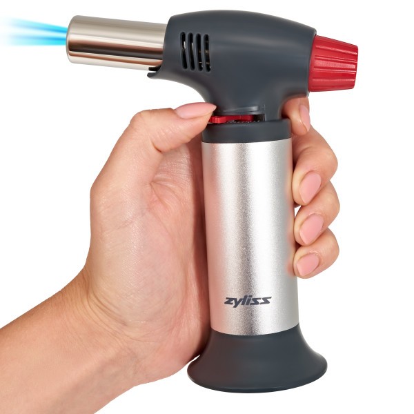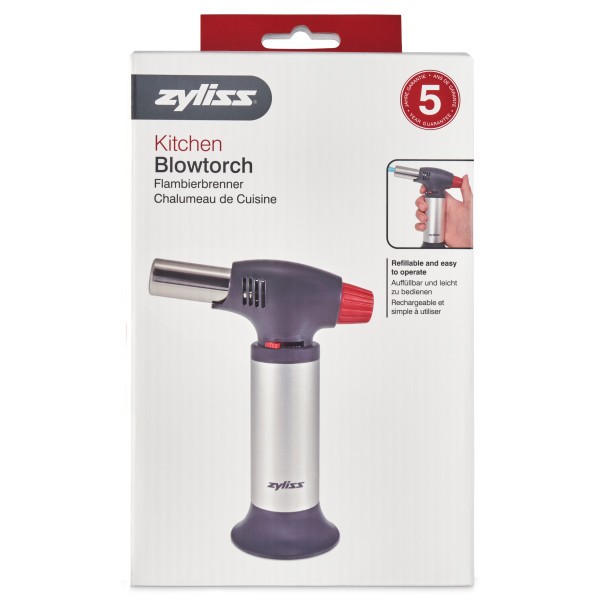 Kухненската горелка Zyliss се зарежда лесно и има предпазител за предотвратяване на случайно запалване. Пламъкът е регулируем и може да се контролира лесно, когато се използва, която я прави чудесна за работа с прецизни и сложни рецепти.Станете кулинарен гений с кухненската горелка Zyliss! Това е идеалният инструмент за запичане и карамелизиране на редица домашно приготвени ястия, включително десерти, целувки и пудинги.