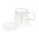 С този сет за чай Вие можете бързо и лесно да запарите чаша вкусен чай само за себе си. Сетът се характеризира с голям стъклен филтър за насипен чай и е произведен изцяло от топлоустойчиво боросиликатно стъкло. Капакът може да се използва за покриване на чашата, докато се запари чая, и като поставка за филтъра след това. Вместимост – 290 мл.