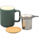Открийте удоволствието от ритуала на чая с тази стилна керамична чаша, създадена за хора, които ценят качеството и спокойните моменти. С вместимост от 375 мл тя е достатъчно голяма, за да се насладите на любимите си чайове, а в същото време удобна за ежедневна употреба у дома или в офиса. Цедката от неръждаема стомана позволява лесно приготвяне на чай от цели листа или билки, като запазва аромата и чистия вкус. Чашата се допълва от красив капак от естествен бамбук, който поддържа напитката топла и служи като практична поставка за филтъра след запарване.