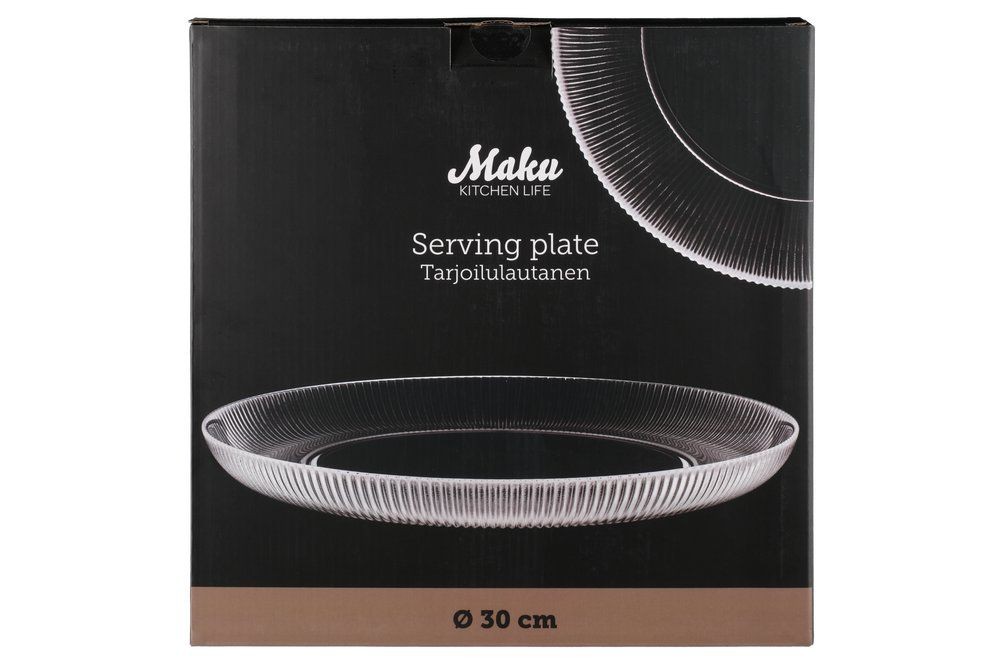 - MAKU Стъклено оребрено плато/ чиния за сервиране, Ø30 см