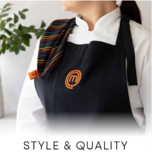 Обединявайки елегантен дизайн с мотивирани от индивидуалността детайли, всички текстилни продукти MasterChef са изработени с качество и прецизност. Снабдени с джобове, регулируеми презрамки и удобни халки за закачане, всички изработени от 100% памук, тези продукти са идеален подарък за феновете на шоуто и кулинарни ентусиасти.