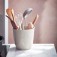 Благодарение на широкия си отвор и щедрата си височина, поставката за прибори държи лъжици, шпатули и бъркалки спретнато организирани и винаги достъпни, като същевременно добавя нотка елегантност към кухненския ви плот.