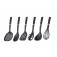 • КОМПЛЕКТ ОТ 6 ЧАСТИ – 6 бр. функционални прибори за готвене и сервиране в черен цвят с оранжев декоративен елемент, незаменими за ежедневна употреба във всяка кухня. Комплектът се състои от 1x лъжица за сервиране, 1x решетъчна лъжица, 1x решетъчна шпатула, 1x черпак за супа, 1x лъжица за спагети, 1x тел за разбиване.