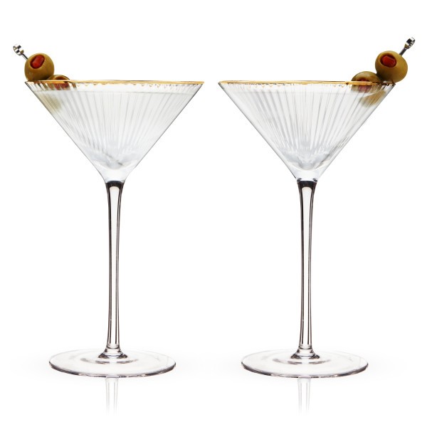 Класическият силует в комбинация с уникални детайли. Вълнообразният кристал и позлатените ръбове правят тези чаши за мартини зашеметяващ начин за сервиране на коктейли - от мартини до Manhattans и Cosmopolitan.